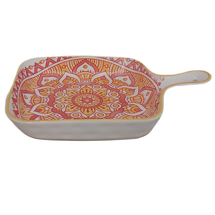 ظرف سرو با جنس سرامیک ورنگ ولعاب عالی یک ظرف همه کاره بحساب می اید که برای سرو همه نوع مواد غذایی استفاده میشود . این تابه با دسته زیبا وکاربردی حمل ظرف را برای شما اسان میکند رنگهایی که در این ظروف استفاده شده بسیار شاد وزنده میباشند.