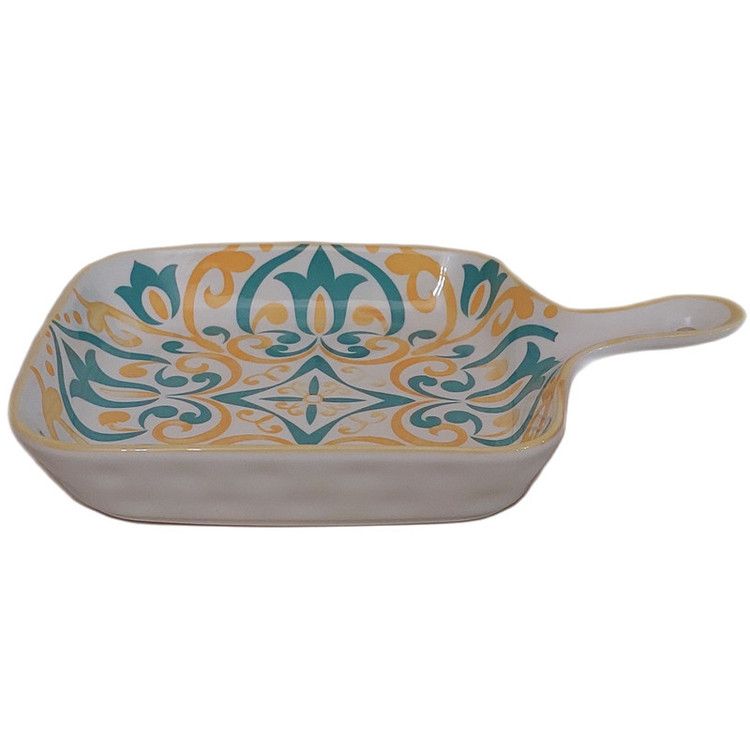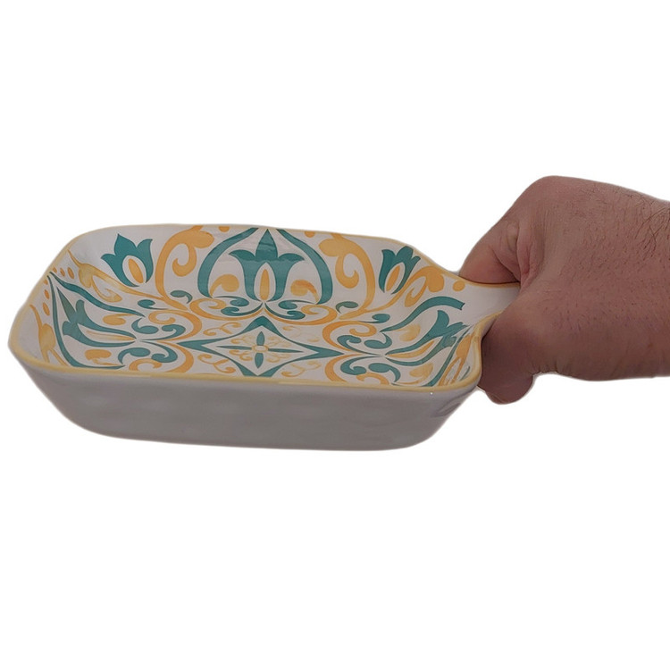 ظرف سرو با جنس سرامیک ورنگ ولعاب عالی یک ظرف همه کاره بحساب می اید که برای سرو همه نوع مواد غذایی استفاده میشود . این تابه با دسته زیبا وکاربردی حمل ظرف را برای شما اسان میکند رنگهایی که در این ظروف استفاده شده بسیار شاد وزنده میباشند.