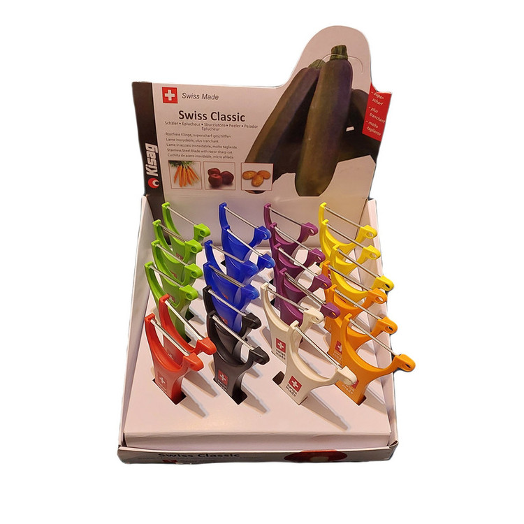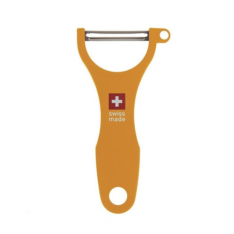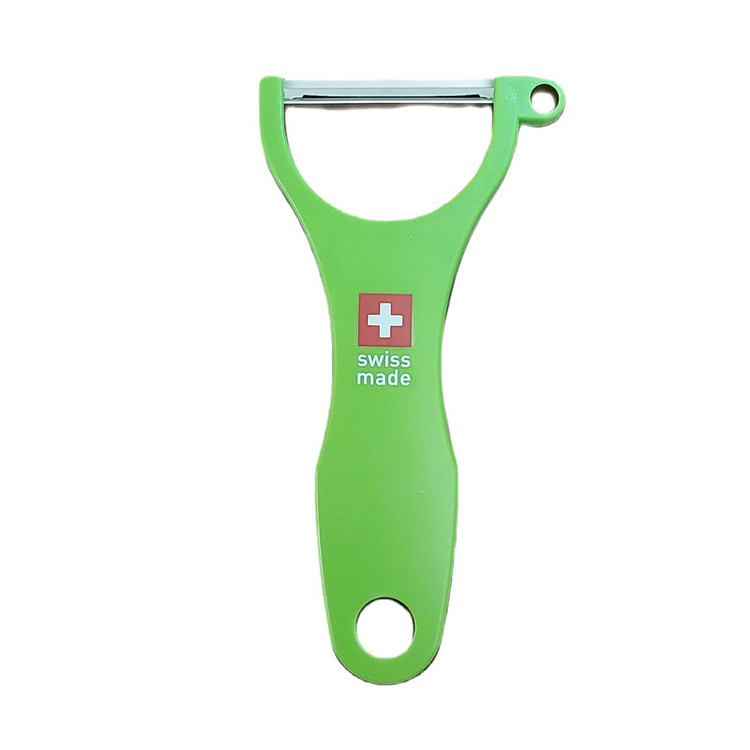 پوست کن سوئیسی KISAG وسیلهای برای پاکسازی و حذف پوست میوهها و سبزیجات استفاده میشود. این محصول اصل و تولید برند Kisag کشور سوئیس میباشد.تیغه پوست کن یکی از مهمترین اجزا آن است که تأثیرگذاری مستقیم بر کیفیت و کارایی این وسیله دارد.این تیغه از فولاد ضدزنگ آلیاژی تهیه میشود و دارای کیفیت بالا و مقاوم به زنگ زدگی است.تیغه به واسطه جنس آن درصد کندی بسیار پایینی دارد و به راحتی کند نمیشود.