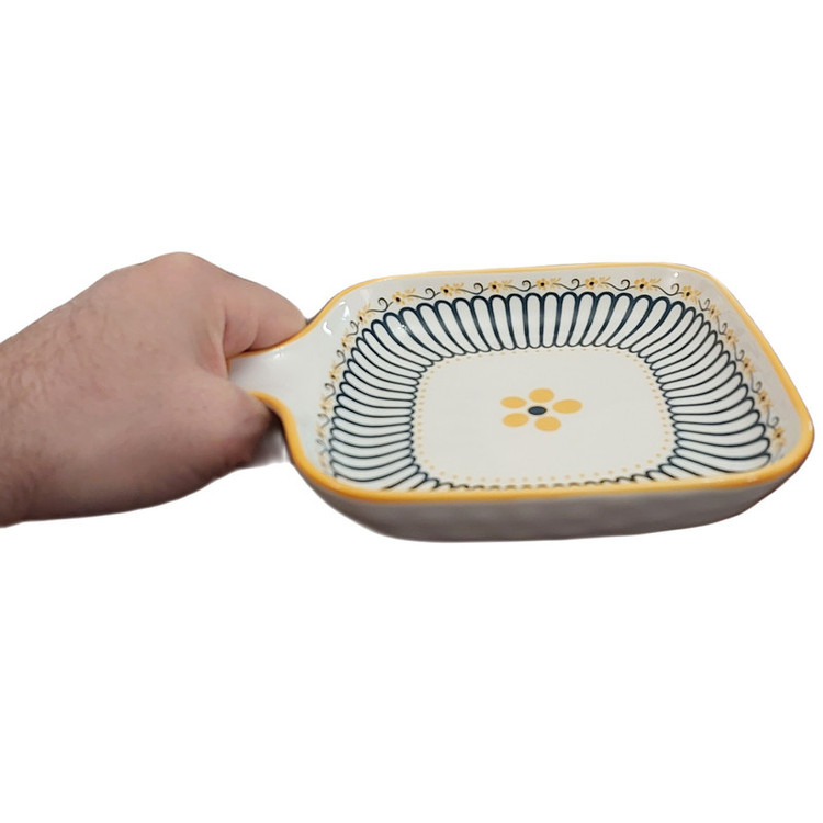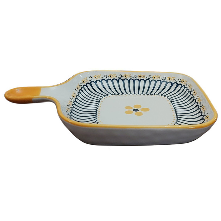 ظرف سرو با جنس سرامیک ورنگ ولعاب عالی یک ظرف همه کاره بحساب می اید که برای سرو همه نوع مواد غذایی استفاده میشود . این تابه با دسته زیبا وکاربردی حمل ظرف را برای شما اسان میکند رنگهایی که در این ظروف استفاده شده بسیار شاد وزنده میباشند.