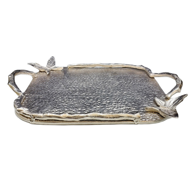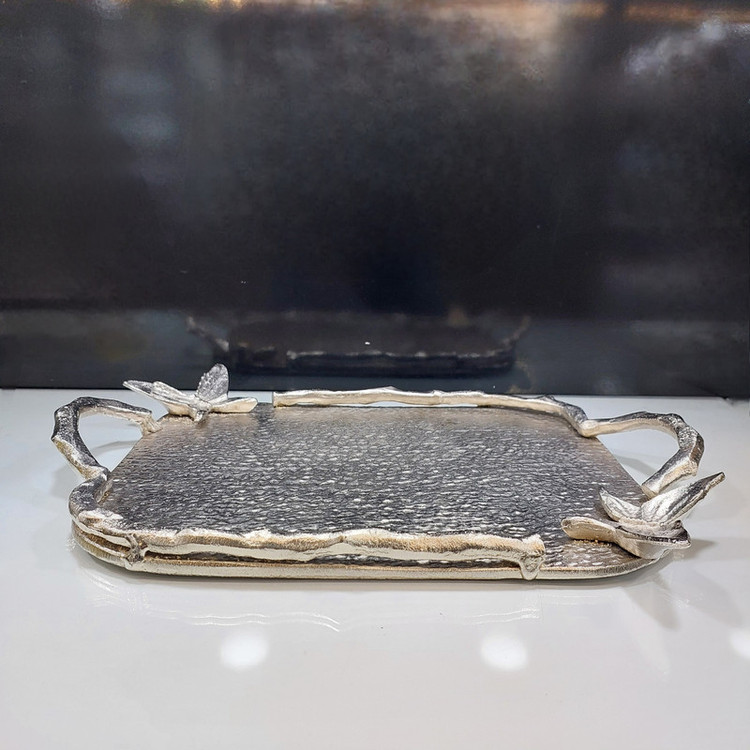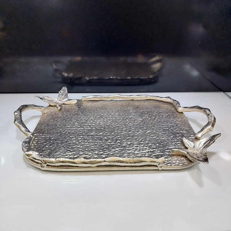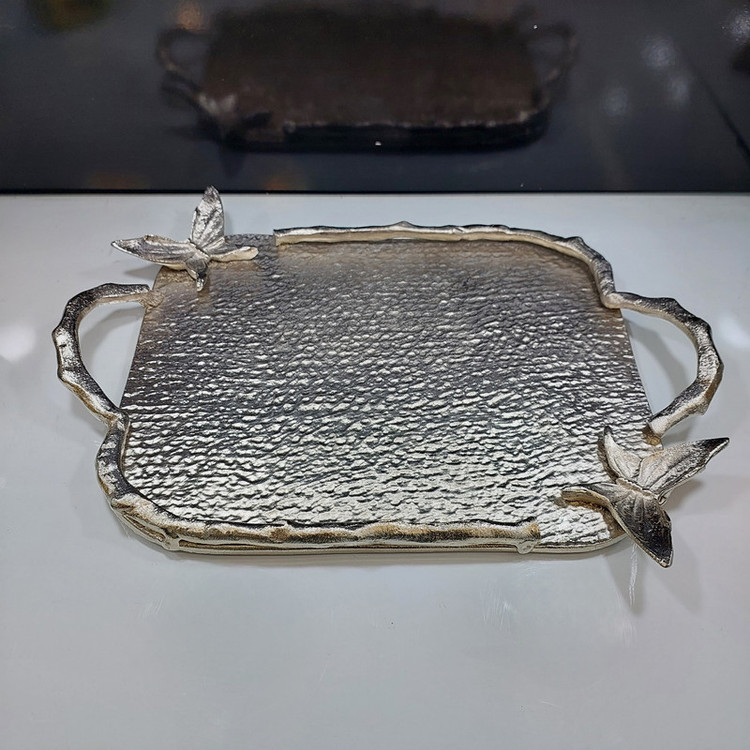 جنس آلومینیوم این سینی باعث مقاوم بودن آن میشود وطرح پروانه بر روی آن زیبایی وزندگی به آن میبخشد. این سینی به عنوان یک قطعه دکوری زیبا در فضاهای داخلی و خارجی مورد استفاده قرار میگیرد. با قرار دادن میوه ها شیرینی ها یا اشیاء دیگر بر روی این سینی میتوانید ظاهری شیک وجذاب برای میز خود ایجاد کنیدو لحظاتی دلپذیر را تجربه کنید.