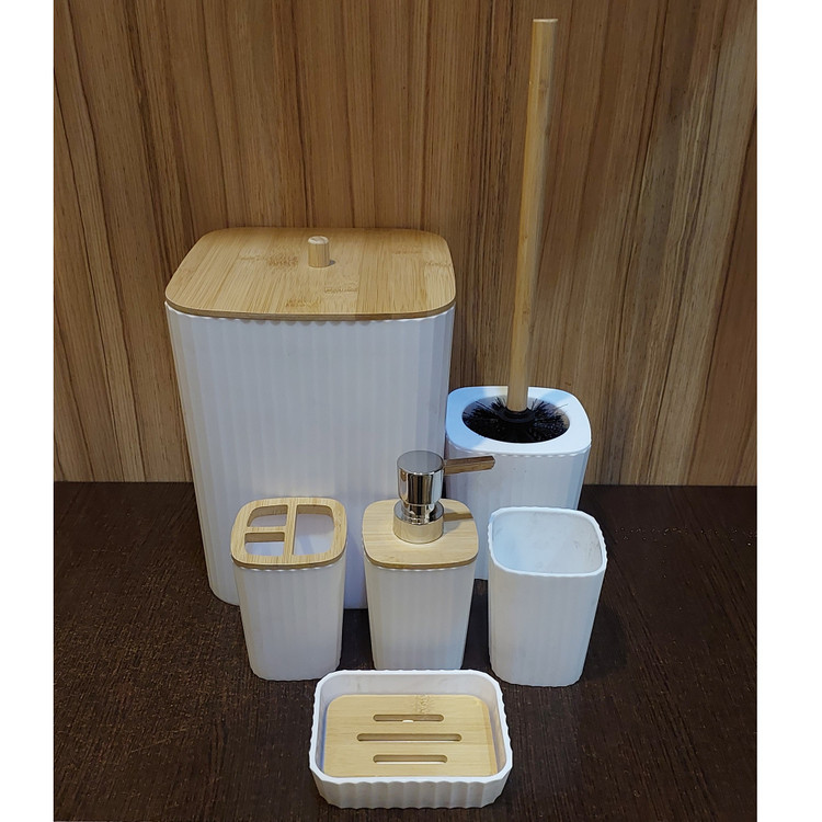 سرویس بهداشتی 6 پارچه از جنس پلاستیک و آنتی باکتریال ساخت کشور چین یک مجموعه کامل وکارآمد در حمام و توالت است . جنس پلاستیک آن باعث میشود سرویس بهداشتی سبک و قابل حمل باشد و همچنین مقاوم در برابر آب و رطوبت باشد.ویژگی آنتی باکتریال این سرویس به شما اطمینان میدهد که با استفاده از آن بهداشت شخصی وبهداشت عمومی حفظ شود .این ویژگی باعث کاهش رشد و تکثیر باکتریها و میکروبها در سطح سرویس بهداشتی میشود.سرویس بهداشتی 6 پارچه شامل سطل زباله ِ برس ِ جامایع ِ جا مسواکی ِ لیوان و جا صابونی است .