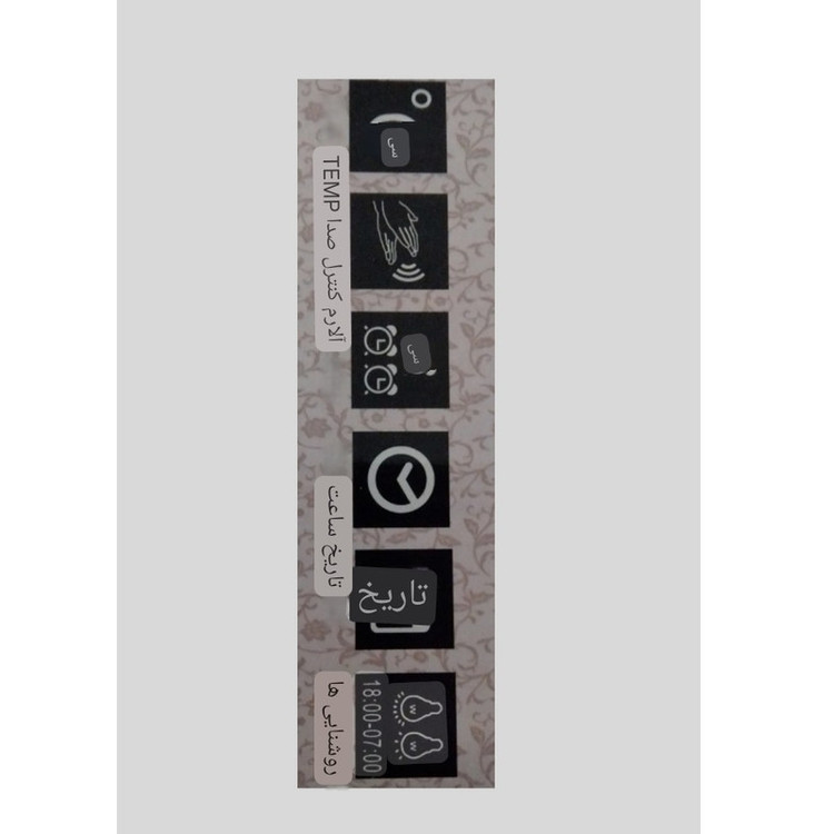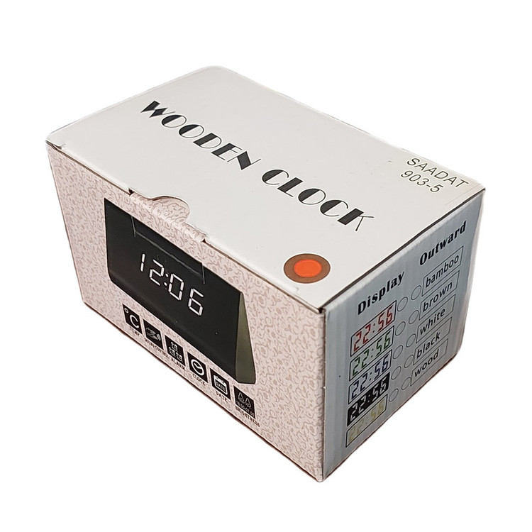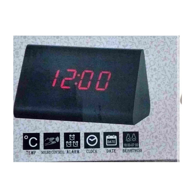 دارای سنسور کنترل صدا با دست نمایش زمان و تاریخ و دما بصورت خودکار تغییر میکند در صورت خاموش شدن زمان حفظ میشود