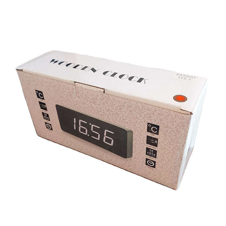 دارای سنسور کنترل صدا با دست نمایش زمان و تاریخ و دما بصورت خودکار تغییر میکند در صورت خاموش شدن زمان حفظ میشود
