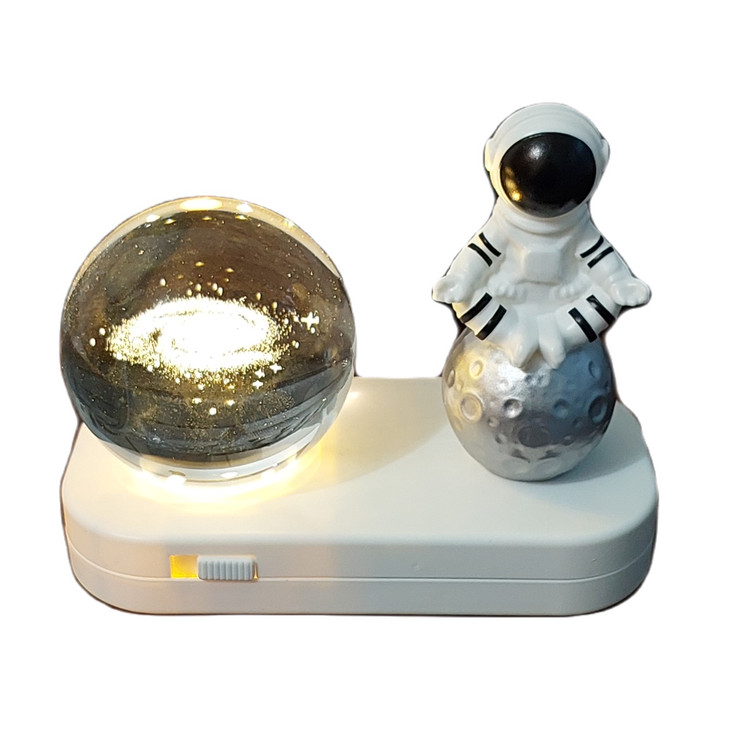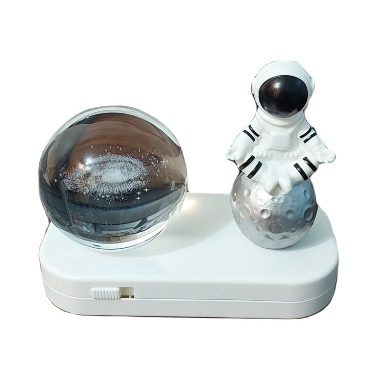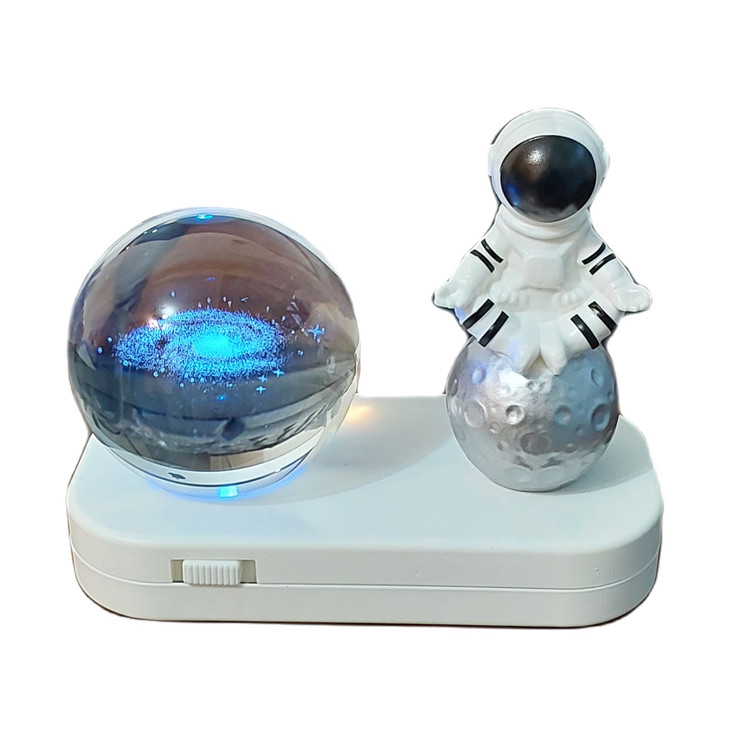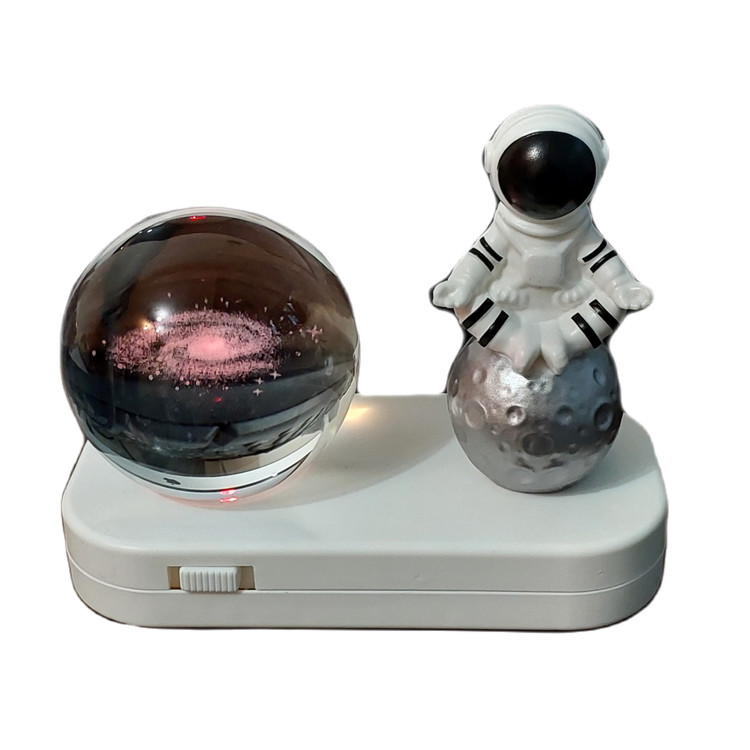 چراغ خواب شارژی با کابل USB دارای گوی طرح کهکشان میباشد که در زیر گوی چراغ LED با نور ثابت آفتابی و نور چند رنگ متغییر جلوه خاصی به اتاق میبخشد .همچنین در کنار گوی مجسمه ای از فضانورد قرار گرفته است که زیبایی آن را دو چندان میکند.شما میتوانید این چراغ را از طریق کابل USB به هر منبع تغذیهای که دارای پورت USB است، متصل کنید و آن را شارژ کنید. بعد از شارژ کامل، میتوانید از آن استفاده کنید.به طور کلی، چراغ خواب شارژی با کابل USB با مجسمه فضانورد زیبا، رنگهای مختلف نور نرم و دلپذیر، یک وسیله تزئینی جذاب و کاربردی برای اتاق شماست که به شما احساس آرامش و رضایت میدهد.