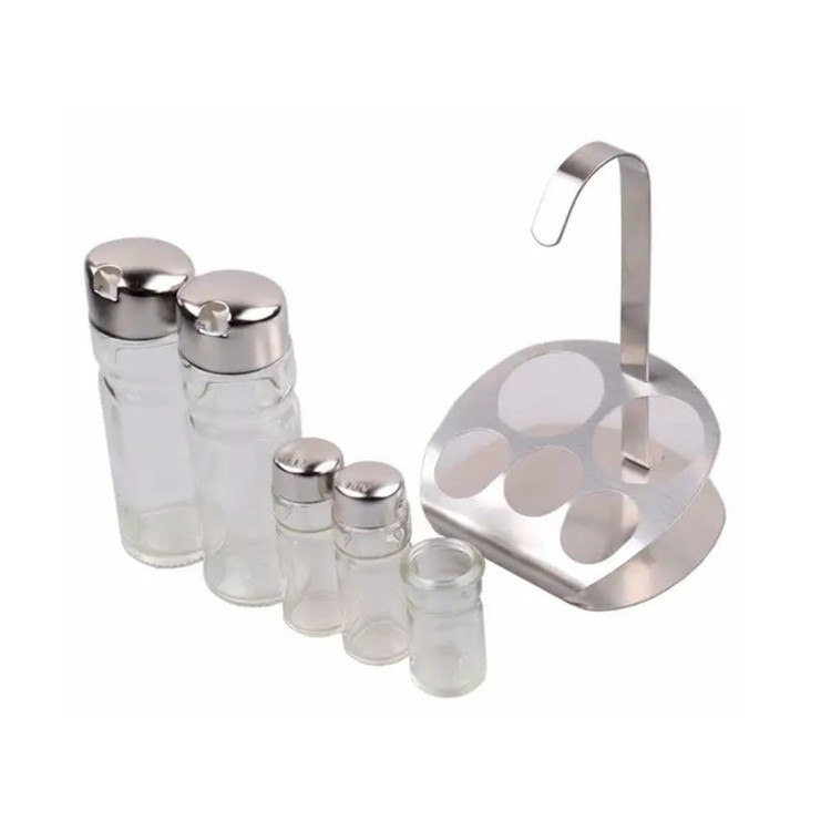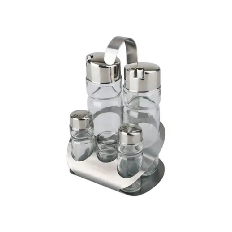 سایر توضیحات: این ست شامل : 2 ظرف روغن و آبلیمو به ارتفاع 17.5 سانتیمتر و 2 ظرف نمک و فلفل به ارتفاع 10.5 سانتیمترو یک ظرف جای خلال به همراه یک استند که به عنوان پایه نگهدارنده می باشد.