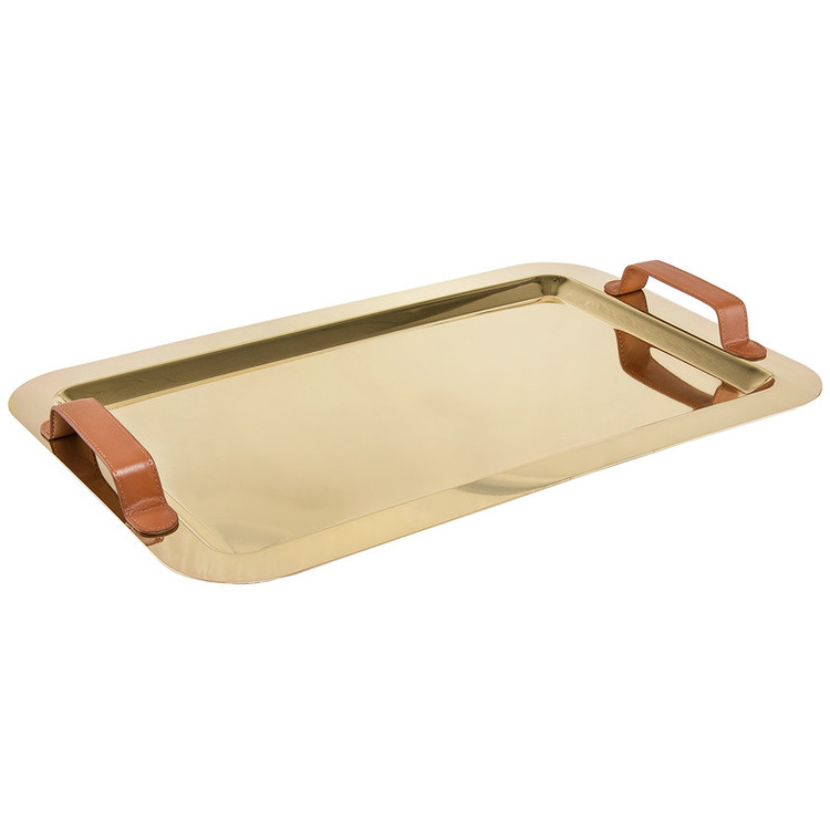 - سینی پذیرایی - جنس بدنه و دسته : استیل - روکش دسته ها : چرمی - قابلیت شستشو در ماشین ظرفشویی : ندارد