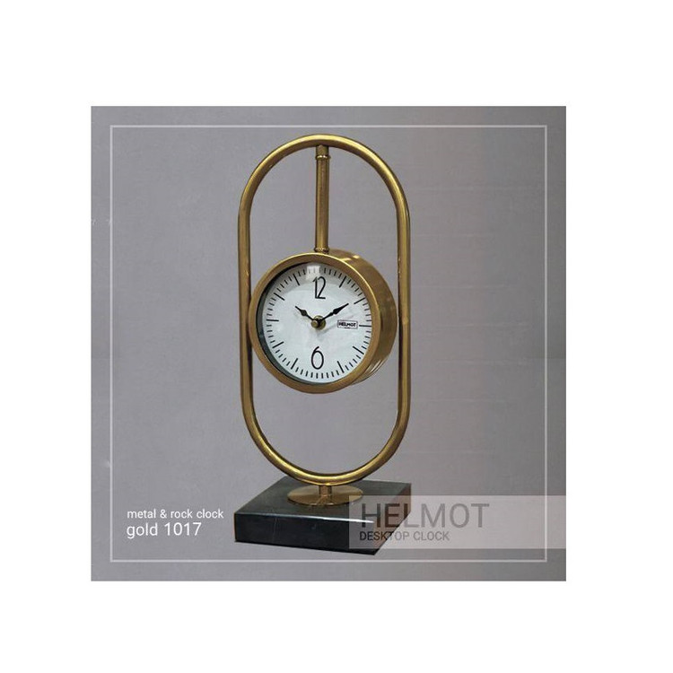 ساعت رومیزی هلموت، ساعت رومیزی با متریال ترکیبی سنگ و فلز، ساعت رومیزی مدرن با موتور آرامگرد، رنگ طلایی با صفحه سفید، مدل 1017 ساعتهای رومیزی برای افرادی که تمایل دارند صبحها زیاد بخوابند ایدهآل هستند زیرا بیدار شدن به موقع را تضمین میکنند. این ساعتها که معمولاً روی یک میز قرار میگیرند، یکی دیگر از انواع ساعتهای دیواری در نظر گرفته میشوند، اما ویژگیهای برجستهتری نسبت به نمونههای دیواری خود دارند.
