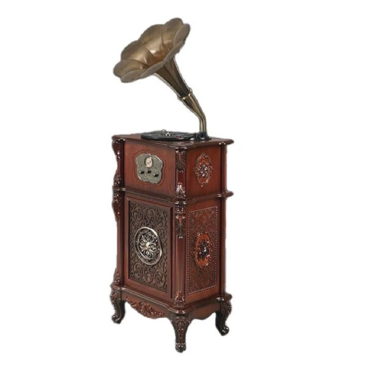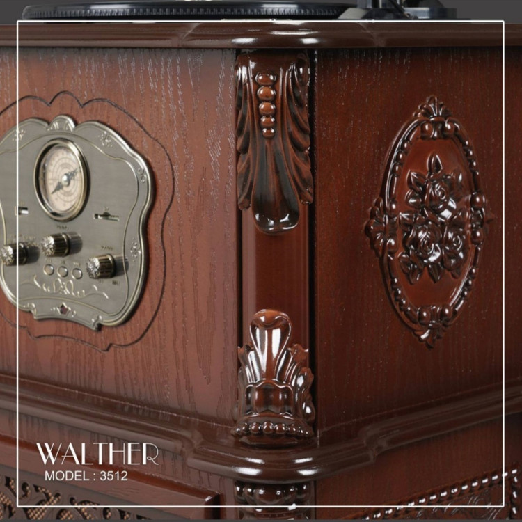 این محصول ساخت برند معتبر والتر است که دارای بدنه ای از جنس چوب باکیفیت می باشد. انواع مدل های گرامافون با توجه سبک طراحی زیبا و جذابی که دارند جلوه زیبایی به دکور منزل و یا محیط کاری شما می دهند، گرامافون ها ایستاده علاوه بر تاثیرگذاری بر فضای ظاهری محیط از امکاناتی برخوردار هستند که می توان از آن ها به عنوان یک سیستم پخش نیز استفاده کرد از جمله درگاه USB , امکان اتصال بلوتوث , پشتیبانی از کارت های حافظه SD CARD , پخش رادیو 2 موج و پخش تمامی صفحات گرامافون که اصلی ترین و نوستالژیک ترین کاربرد انواع مدل های گرامافون های ایستاده و رومیزی نیز می باشد. شرکت والتر تمامی مدل های گرامافون خود را 2 سال ضمانت می کند تا خیال افرادی که قصد خرید گرامافون دارند را بطور کامل راحت کند.