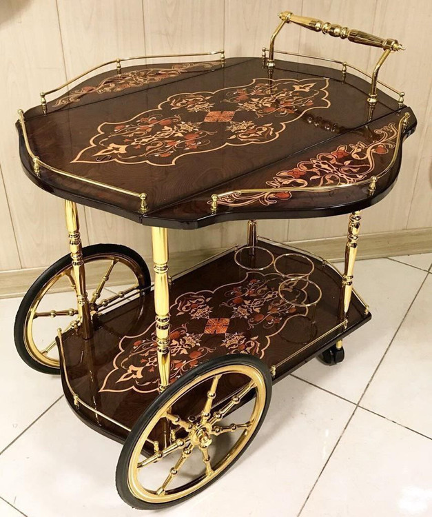 به جای بردن مجمع یا سینی با استفاده از این میز چرخدار لوکس اقلام پذیرایتان را جابه جا کنید و علاوه بر لذت پذیرای از میهمان به شیوه ای مدرن سهولت در جابه جایی وسایل پذیرایی را برایتان به ارمغان می آورد .این میز از جنس MDF بوده دارای 4 چرخ متحرک و 2 لبه باز شونده برای بزرگتر شدن است .