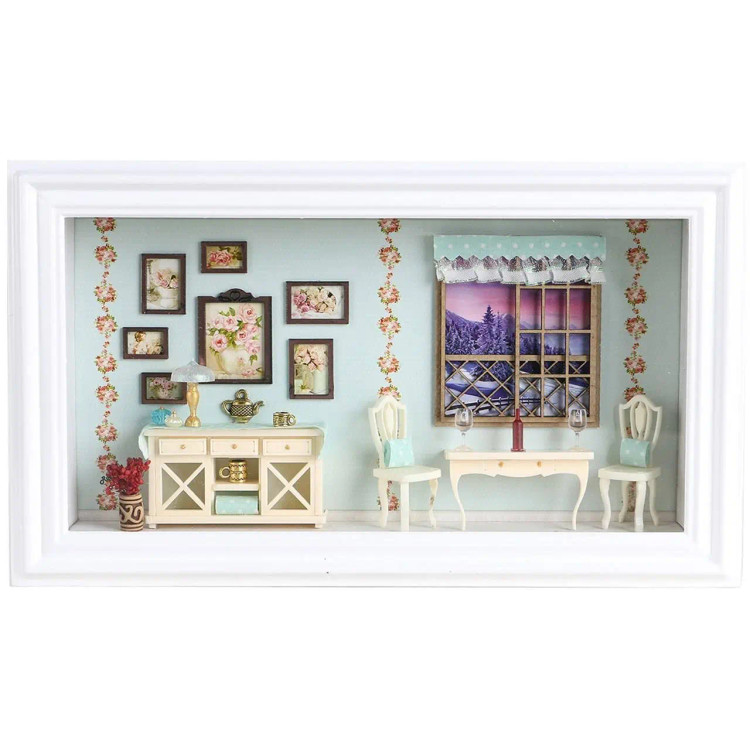 تابلو سه بعدی طرح دیدار زمستانه با قاب سفید pvcو ساخته شده از پلاستیک و چوب بسیار تمیز و شیک دارای جعبه کادویی