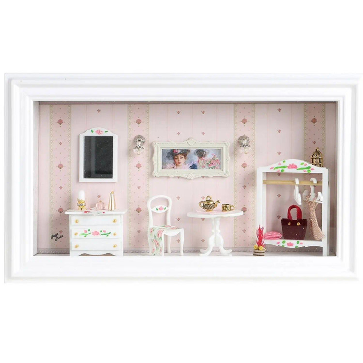 تابلو سه بعدی طرح ورتا صورتی با قاب سفید pvc و ساخته شده از چوب و پلاستیک بسیار تمیز وشیک دارای تک جعبه کادویی